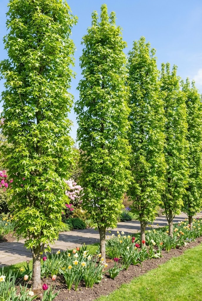 Ambrowce najlepiej czują się na glebach przepuszczalnych, żyznych i zasobnych w składniki odżywcze. Slender Silhouette uwielbia stanowiska słoneczne i osłonięte od silnych, mroźnych wiatrów – słońce jest kluczowe, aby liście nabrały swojej legendarnej, jesiennej intensywności. Młode sadzonki warto palikować i zadbać o regularne podlewanie w pierwszych miesiącach po posadzeniu, aby zapewnić im stabilny start. Zalecane pH gleby powinno oscylować w granicach 5,5-6,5 (lekko kwaśne). Odpowiednie przygotowanie podłoża i ściółkowanie zapewni drzewku idealne warunki do dynamicznego rozwoju systemu korzeniowego.