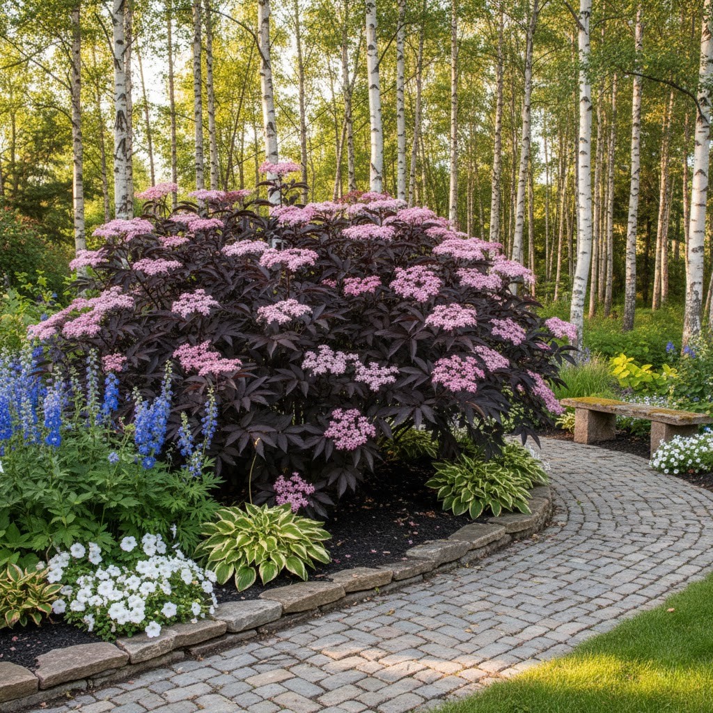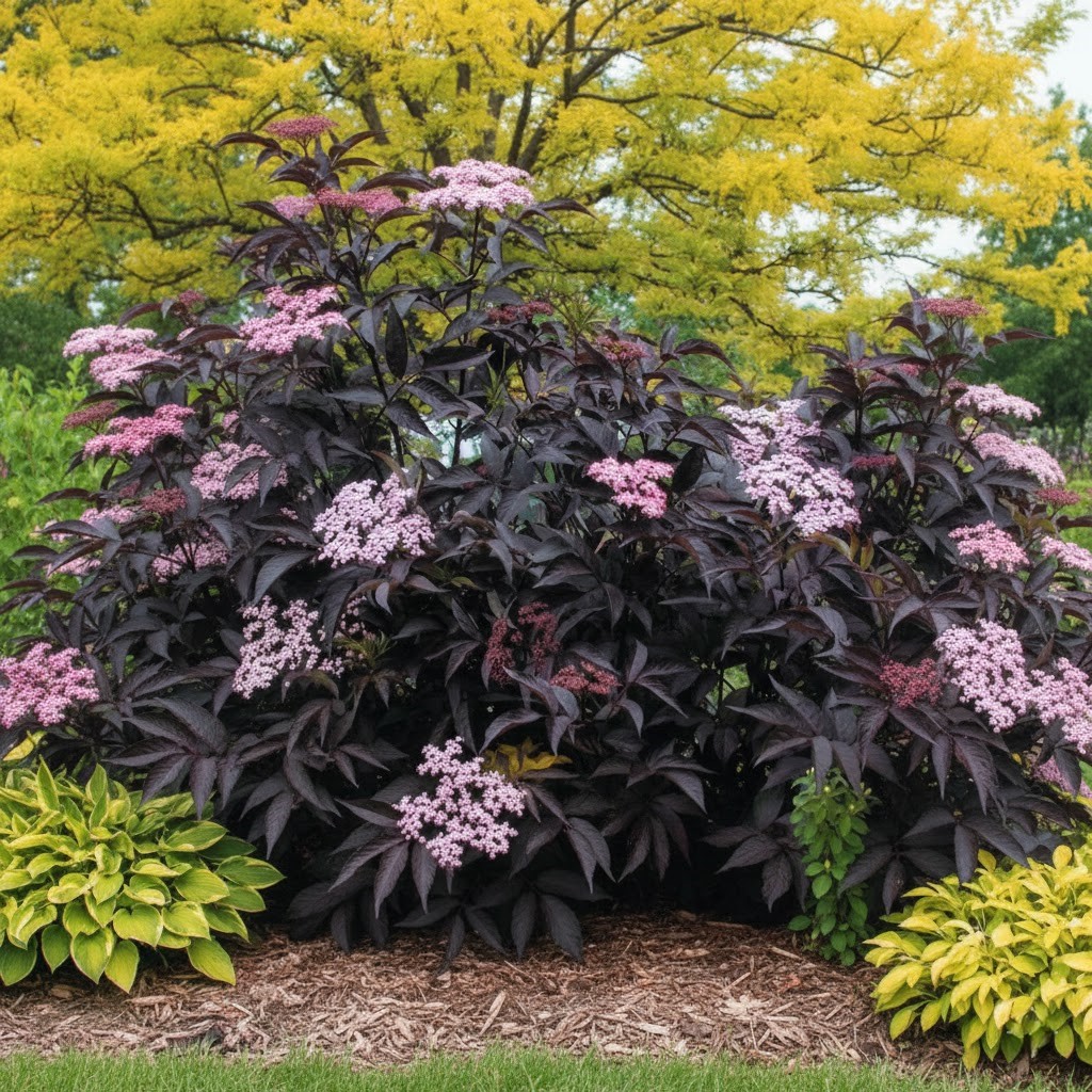 ✅ Idealny Akcent Kolorystyczny: Jego niemal czarne liście stanowią doskonałe tło dla jasnych bylin i innych roślin, wprowadzając głębię do kompozycji.