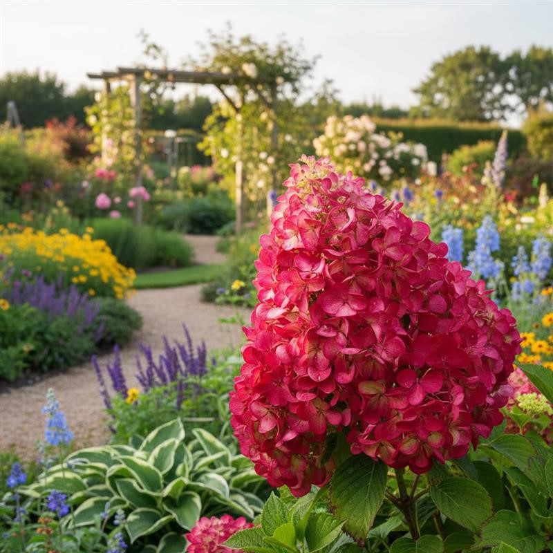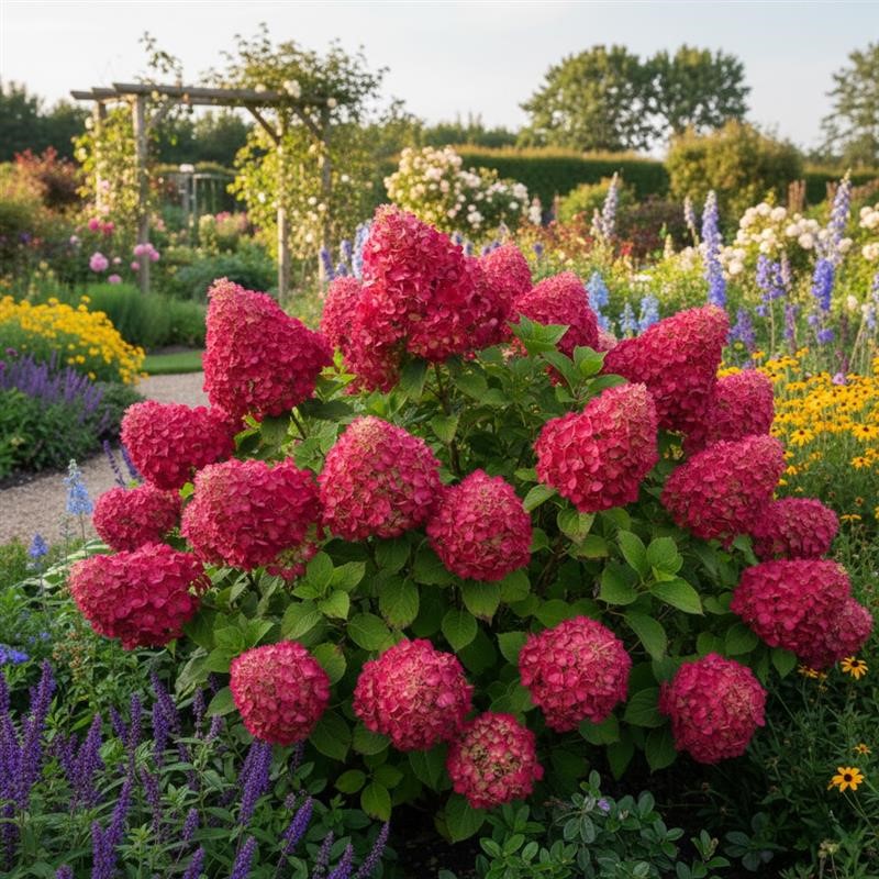 Hortensje bukietowe potrzebują żyznej, przepuszczalnej i umiarkowanie wilgotnej gleby o lekko kwaśnym odczynie. Optymalne stanowisko to miejsce pełne słońca (co sprzyja intensywniejszemu wybarwianiu się na czerwono) lub lekki półcień. Ze względu na szybki wzrost i produkcję ogromnej ilości kwiatów, w czasie suszy wymaga regularnego podlewania. Wiosną należy skrócić pędy nisko nad ziemią oraz zastosować zasilanie nawozami wieloskładnikowymi, co zapewni Twojej roślinie energię do spektakularnego wzrostu.