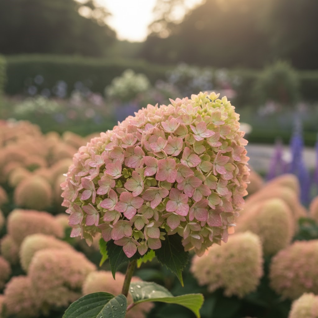 Hortensja bukietowa 'Little Lime' to jedna z najbardziej cenionych karłowych odmian tego krzewu, będąca mniejszą siostrą legendarnej odmiany 'Limelight'. Jej gęste, seledynowo-limonkowe kwiatostany od lipca zdobią ogrody, tworząc świeże i eleganckie widowisko, które rozświetla każdą rabatę. Odmiana ta zachwyca unikalną barwą i kompaktową formą, będąc symbolem nowoczesnego designu i uporządkowanej obfitości. Jest to roślina niezwykle odporna i wdzięczna w uprawie, co czyni ją idealnym wyborem do mniejszych ogrodów, donic na tarasach oraz niskich żywopłotów w całej Polsce. Wybierając 'Little Lime', sadzisz w swoim ogrodzie stylowy akcent i gwarancję niezawodnego, długiego kwitnienia.