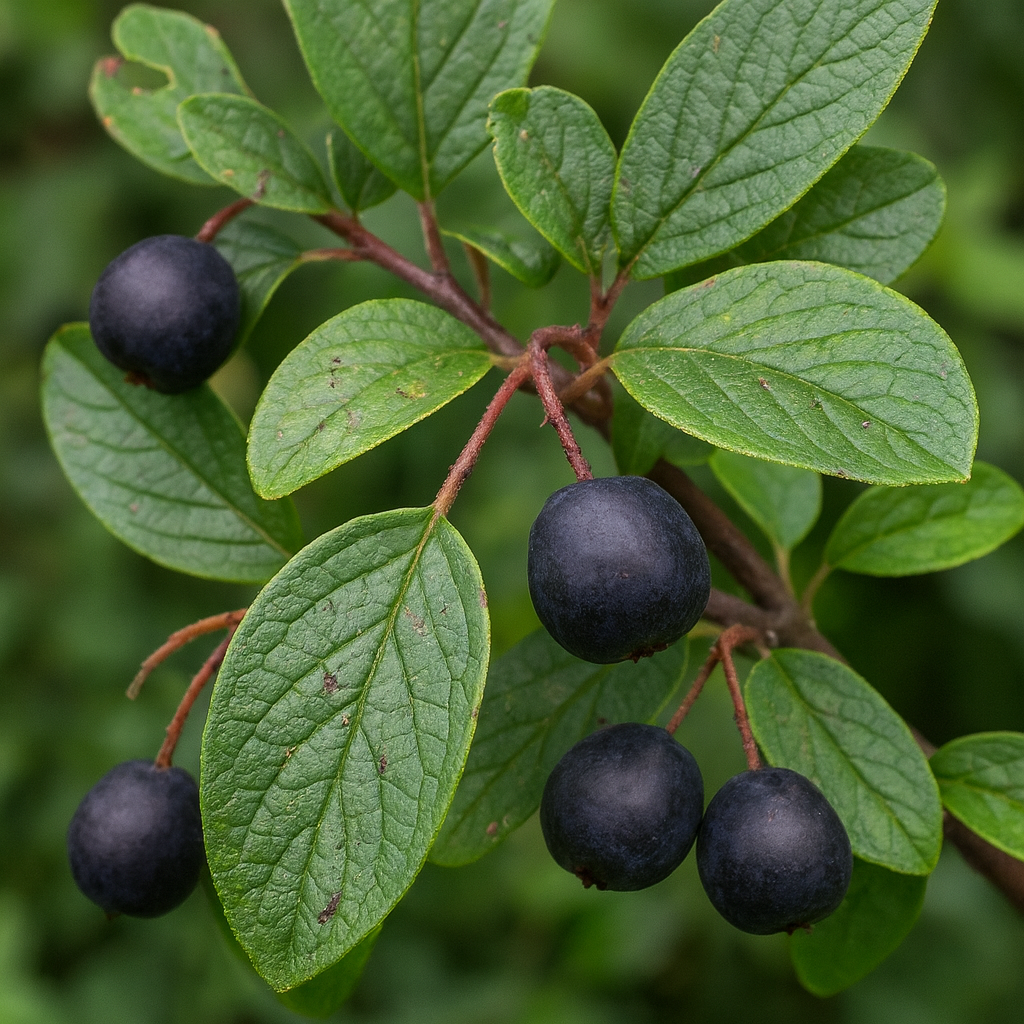 Późnym latem i jesienią na krzewie pojawiają się liczne, drobne owoce o kulistym kształcie i ciemnej, niemal czarnej barwie. Owocowanie jest regularne i bardzo obfite, co dodaje roślinie uroku w okresie jesienno-zimowym. Owoce te są nie tylko elementem dekoracyjnym, ale stanowią również cenny pokarm dla ptaków zimujących w naszych ogrodach. Choć nie są one przeznaczone do spożycia przez ludzi, ich widok na tle przebarwiających się liści stanowi jedną z najpiękniejszych ozdób jesiennego krajobrazu.