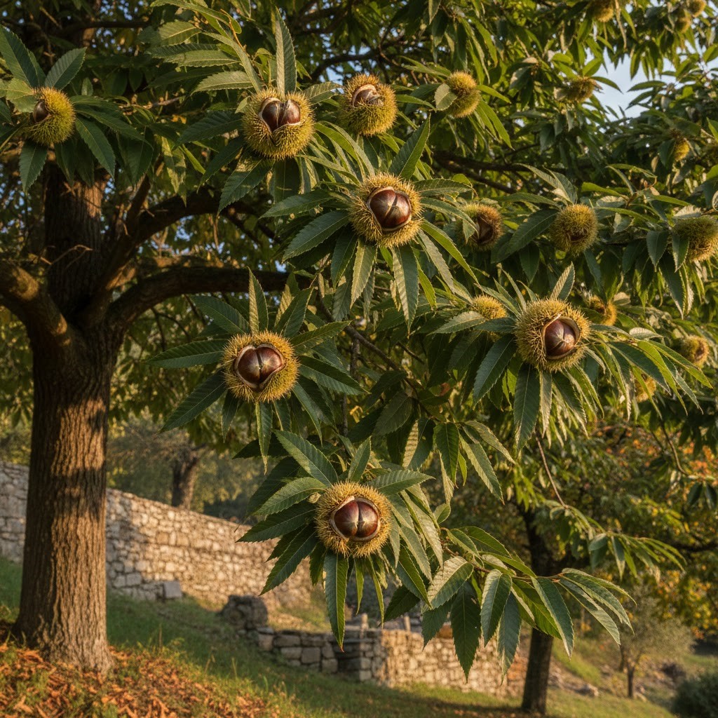 Kasztan jadalny 'Marrone di Marradi' to legendarna, szczepiona odmiana pochodząca z włoskiej Toskanii, która od wieków uznawana jest za jedną z najlepszych na świecie, będąc synonimem luksusowego smaku i wykwintnych deserów. Jej owoce typu "Marrone" wyróżniają się na tle zwykłych kasztanów imponującą wielkością oraz wyjątkowo słodkim, niemal kremowym wnętrzem. Jest to drzewo o szlachetnym pokroju i dużej wytrzymałości, co czyni je idealnym wyborem dla pasjonatów rzadkich roślin użytkowych i smakoszy domowych specjałów. Wybierając Marradi, zapraszasz do swojego ogrodu śródziemnomorski klimat i gwarancję zdrowych, pożywnych owoców najwyższej klasy.