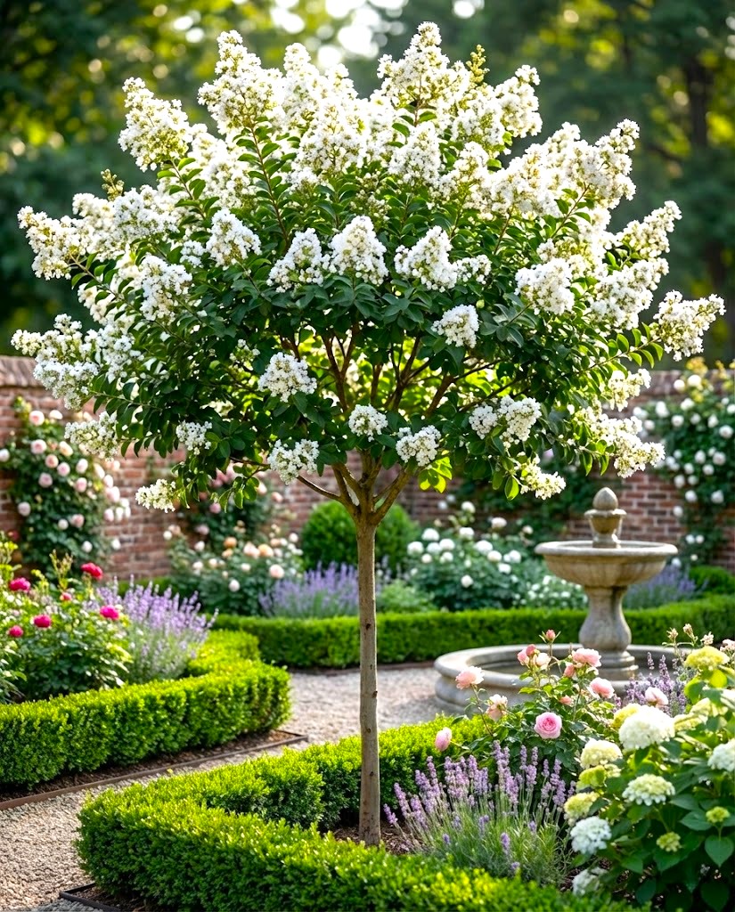 Pierwszych, puszystych kwiatów możesz spodziewać się już w pierwszym lub drugim roku po posadzeniu. Drzewko kwitnie regularnie i bardzo obficie, obsypując koronę girlandami białych wiech przez wiele tygodni lata. Ze względu na swój szlachetny pokrój, Lagerstroemia ta stanowi jedną z najpiękniejszych ozdób sezonu, przyciągając wzrok swoją czystością i formą. Jest to odmiana, która najlepiej smakuje wizualnie jako soliter, stanowiąc najzdrowszą dla oka, perłową dekorację prosto z domowej rabaty.