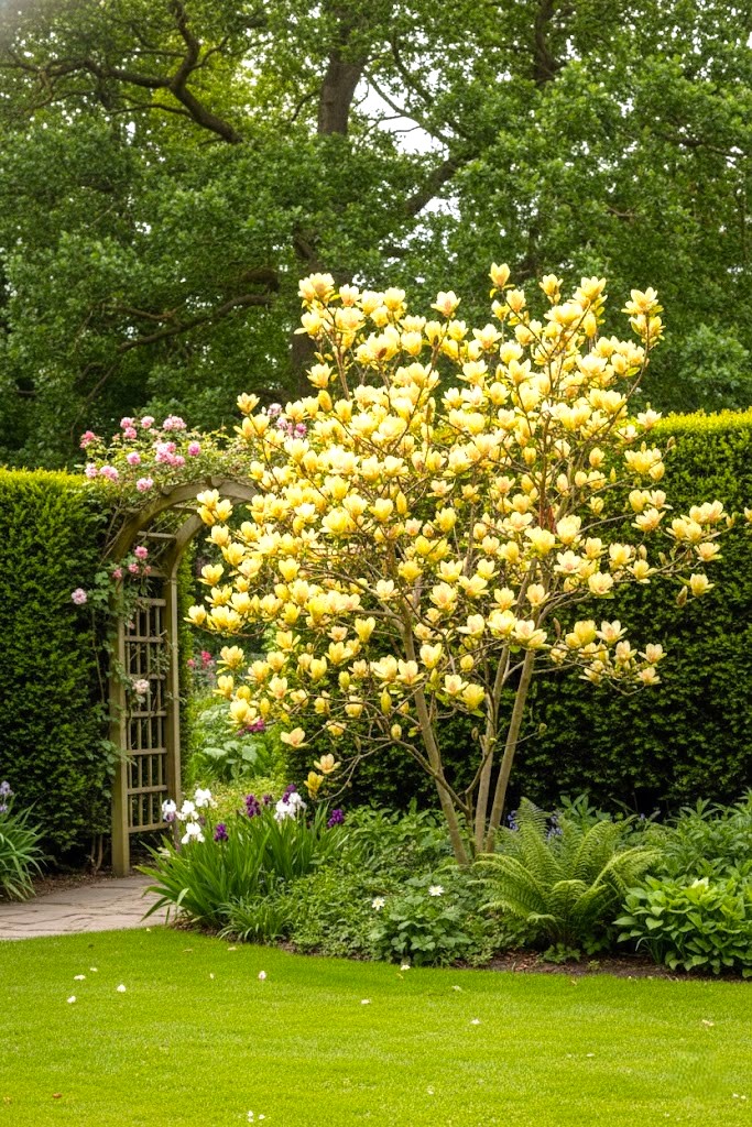 Magnolie najlepiej czują się na glebach przepuszczalnych, żyznych i zasobnych w próchnicę. Sunsation uwielbia stanowiska słoneczne i osłonięte od silnych wiatrów – słońce jest kluczowe, aby kwiaty nabrały swojej legendarnej, intensywnej barwy i miodowego blasku. Młode sadzonki warto palikować i zadbać o regularne podlewanie, szczególnie w pierwszych miesiącach po posadzeniu. Zalecane pH gleby powinno oscylować w granicach 5,0-6,0 (lekko kwaśne). Odpowiednie przygotowanie podłoża i ściółkowanie korą zapewni drzewku idealny start oraz ochronę miejsca szczepienia i korzeni.