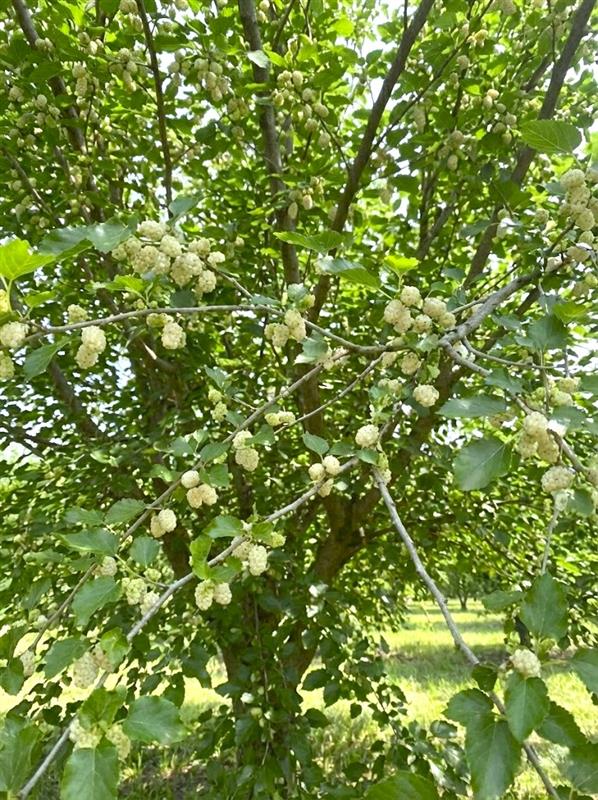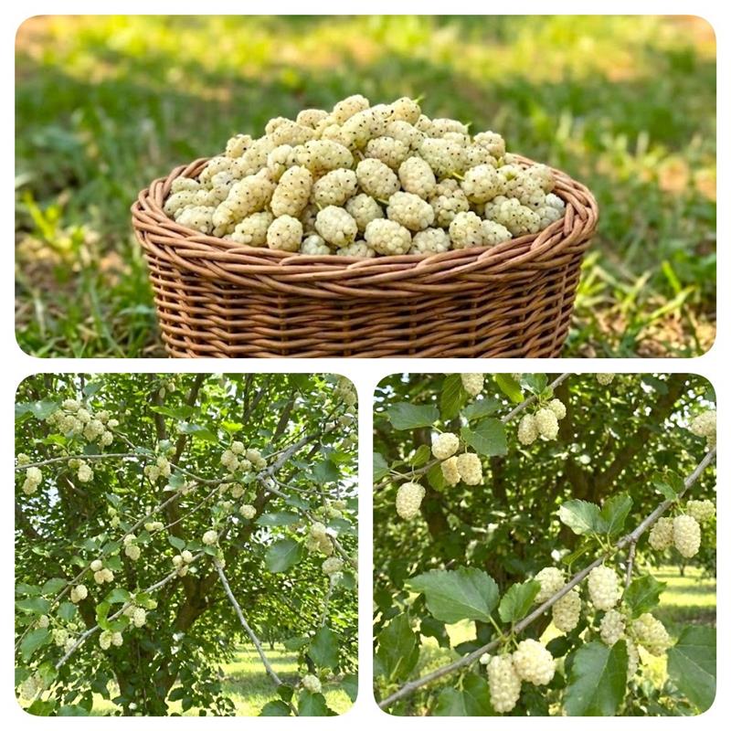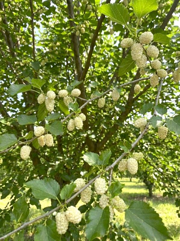 Morwa Biała to drzewo o szybkim wzroście, które tworzy gęstą, kulistą i bardzo dekoracyjną koronę. Owoce są niezwykle atrakcyjne – osiągają około 2-3 cm długości, są miękkie, soczyste i charakteryzują się bardzo słodkim, mdławym posmakiem bez wyczuwalnej kwasowości. Choć ich nazwa sugeruje kolor biały, mogą przybierać barwy od kremowej po lekko żółtawą. Są skarbnicą witamin i minerałów, idealnie nadając się do bezpośredniego spożycia prosto z drzewa oraz na lecznicze nalewki i susze. Dojrzałość zbiorczą osiągają sukcesywnie od końca czerwca do sierpnia.