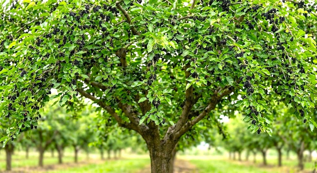 Morwa czarna tworzy gęstą, kulistą koronę, która w starszym wieku staje się malownicza i rozłożysta. Owoce są niezwykle soczyste i aromatyczne – początkowo zielone, z czasem stają się czerwone, by w pełnej dojrzałości przybrać lśniącą, czarnofioletową barwę. Kryją w sobie bogactwo witamin oraz unikalny, słodki smak z delikatną nutą kwasowości. Doskonale smakują prosto z drzewa, ale są również cenionym surowcem na soki, nalewki i konfitury. Dojrzałość zbiorczą osiągają sukcesywnie od lipca do sierpnia.