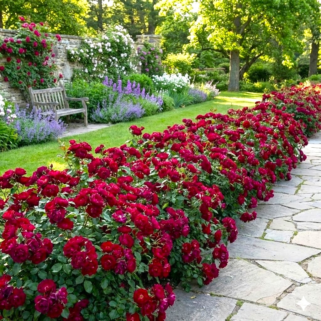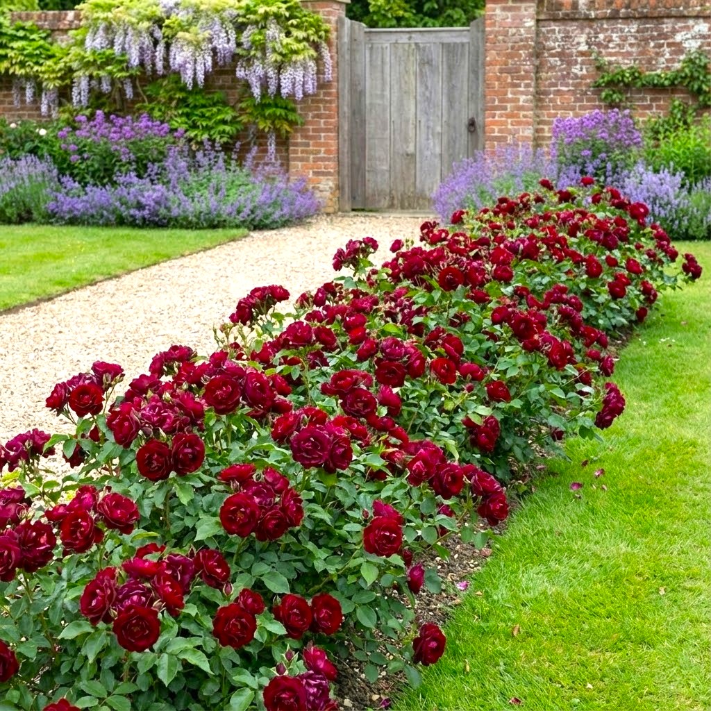 Róża okrywowa to roślina, która charakteryzuje się silnym krzewieniem i rozłożystym pokrojem, szybko tworząc zwarte, zielone poduszki usiane kwiatami. Kwiaty są niezwykle atrakcyjne – zebrane w bogate kwiatostany o nasyconej, ciemnoczerwonej barwie, pod którą kryją się błyszczące, ciemnozielone liście. Doskonale nadają się do obsadzania skarp, dużych rabat oraz jako efektowna obwódka ścieżek, a swoją pełną krasę prezentują od czerwca aż do pierwszych przymrozków.