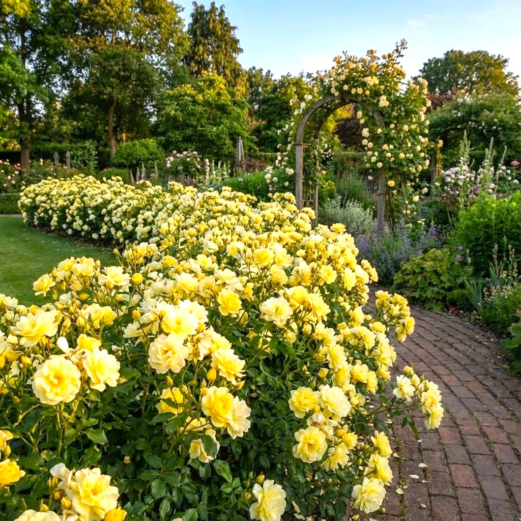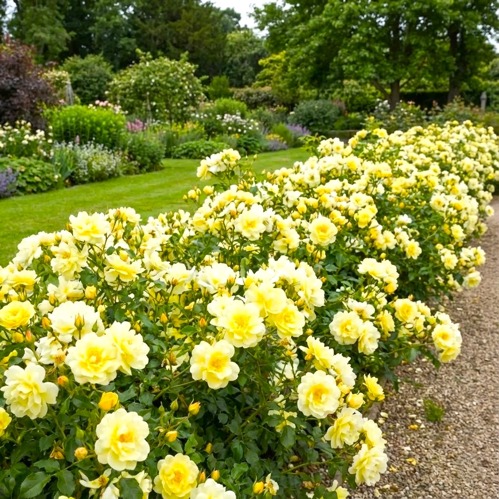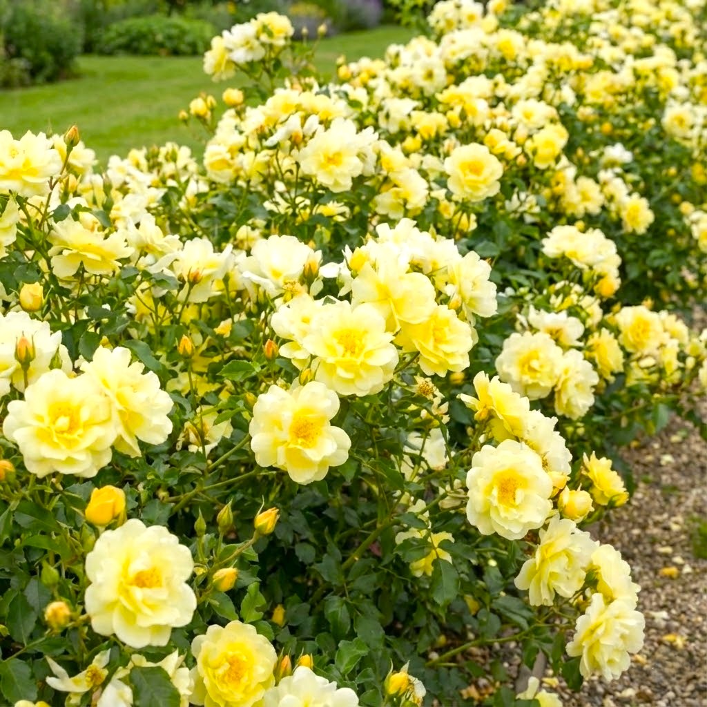 Róże okrywowe najlepiej czują się na glebach przepuszczalnych, żyznych i umiarkowanie wilgotnych. Odmiana żółta uwielbia stanowiska w pełni słoneczne – słońce jest kluczowe, aby kwiaty nabrały swojej intensywnej, legendarnej barwy i aby krzewy zachowały zwarty pokrój. Młode sadzonki warto ściółkować kora, co pomaga zachować wilgoć w glebie. Zalecane pH podłoża powinno oscylować w granicach 6,0-7,0. Odpowiednie przygotowanie stanowiska i wiosenne nawożenie zapewni roślinie idealny start i dynamiczny rozwój systemu korzeniowego.