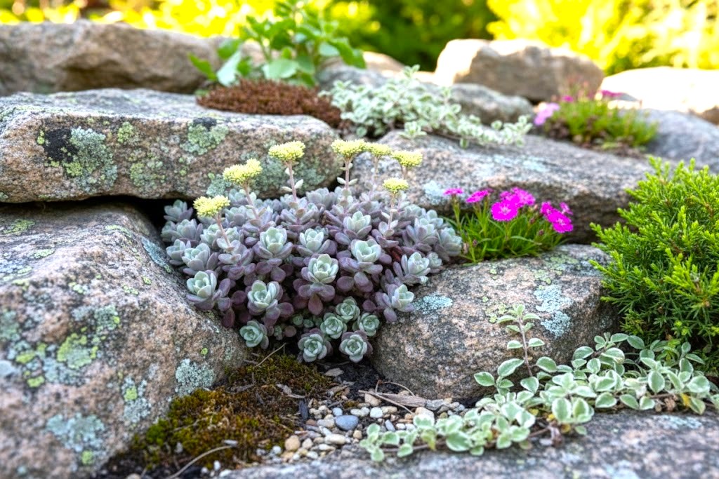 Rozchodniki najlepiej czują się na glebach bardzo przepuszczalnych, piaszczysto-żwirowych i suchych. Purpureum uwielbia stanowiska w pełni słoneczne – słońce jest kluczowe, aby liście nabrały swojej legendarnej, purpurowej intensywności. Młode sadzonki warto po posadzeniu lekko podlać, jednak później roślina doskonale radzi sobie z brakiem opadów. Zalecane pH gleby powinno oscylować w granicach 6,5-7,5. Odpowiednie przygotowanie drenażu zapewni roślinie idealny start i dynamiczny rozwój systemu korzeniowego bez ryzyka zastojów wody.