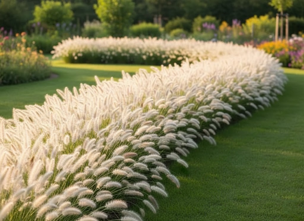 Rozplenica 'Hameln' rośnie umiarkowanie silnie, tworząc niezwykle kształtną, gęstą kępę o fontannowym pokroju, która z czasem pięknie się zagęszcza. Jej liście są wąskie, soczyście zielone, a jesienią przebarwiają się na złocisto-żółte odcienie. Największą ozdobą są puszyste, kremowo-beżowe kwiatostany, które w pełnym słońcu mogą nabrać delikatnego, różowego rumieńca. Pod wpływem wiatru kłosy falują, wprowadzając do ogrodu ruch i niepowtarzalny, sielski nastrój. Kępy są idealne do tworzenia obwódek, nasadzeń grupowych oraz jako ozdoba tarasowych donic.