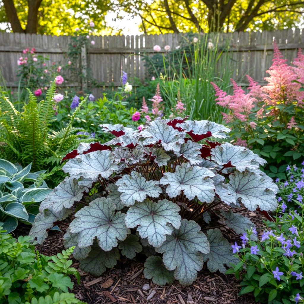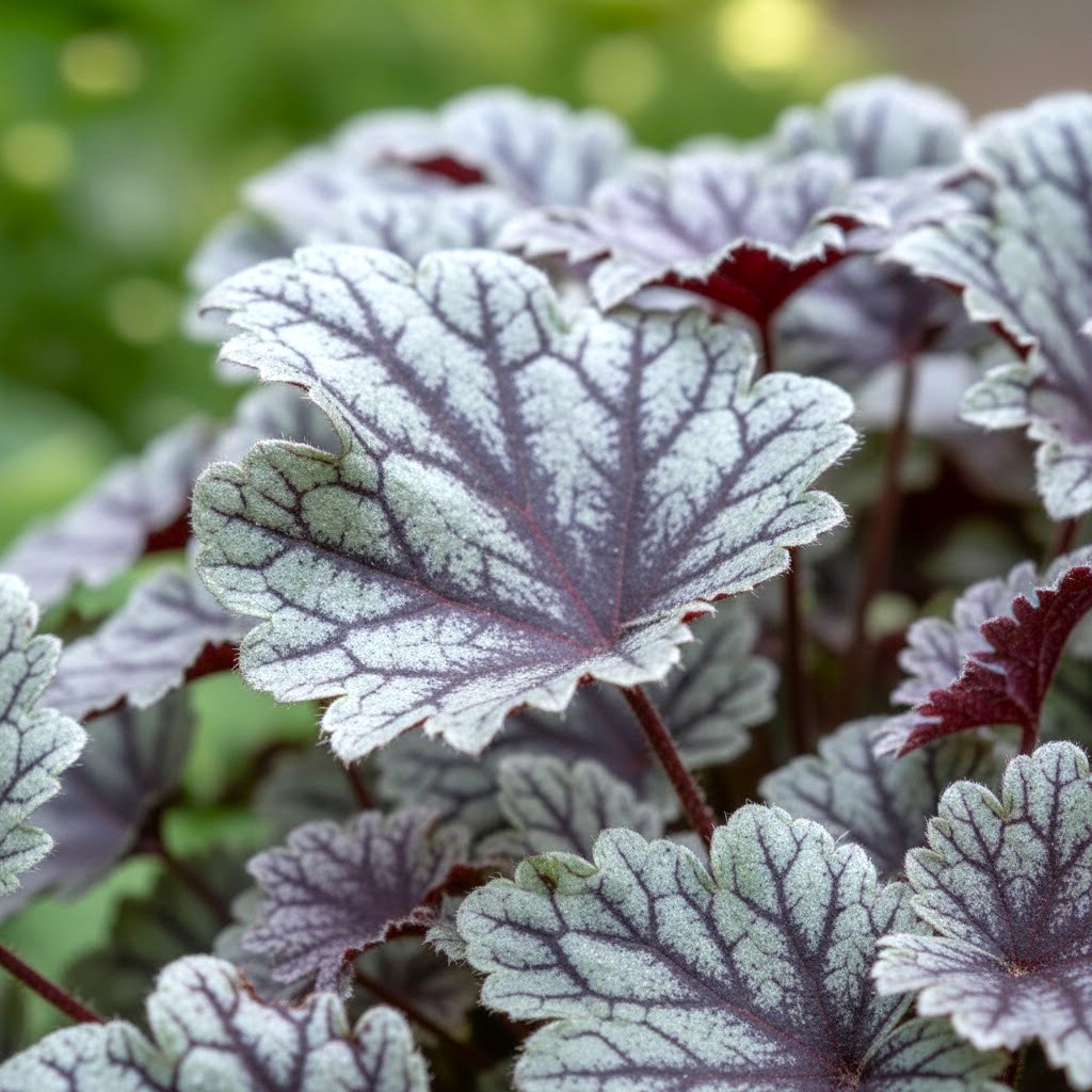 Żurawka Rex Silver rośnie wyjątkowo silnie, tworząc kształtną, gęstą kępę, która z czasem osiąga imponujące rozmiary i pięknie się zagęszcza. Liście są duże, o lśniącej, niemal lustrzanej powierzchni, która w pełnym słońcu nabiera wyjątkowego, srebrzysto-białego blasku. Pod cienką warstwą woskowego nalotu kryje się ciemniejszy spód liścia, co w połączeniu z mocno zarysowaną siatką nerwów daje efekt 3D. Są one idealne do rozjaśniania cienistych rabat oraz jako luksusowy dodatek do ogrodowych kompozycji. Dojrzałość dekoracyjną utrzymują zazwyczaj przez cały rok.